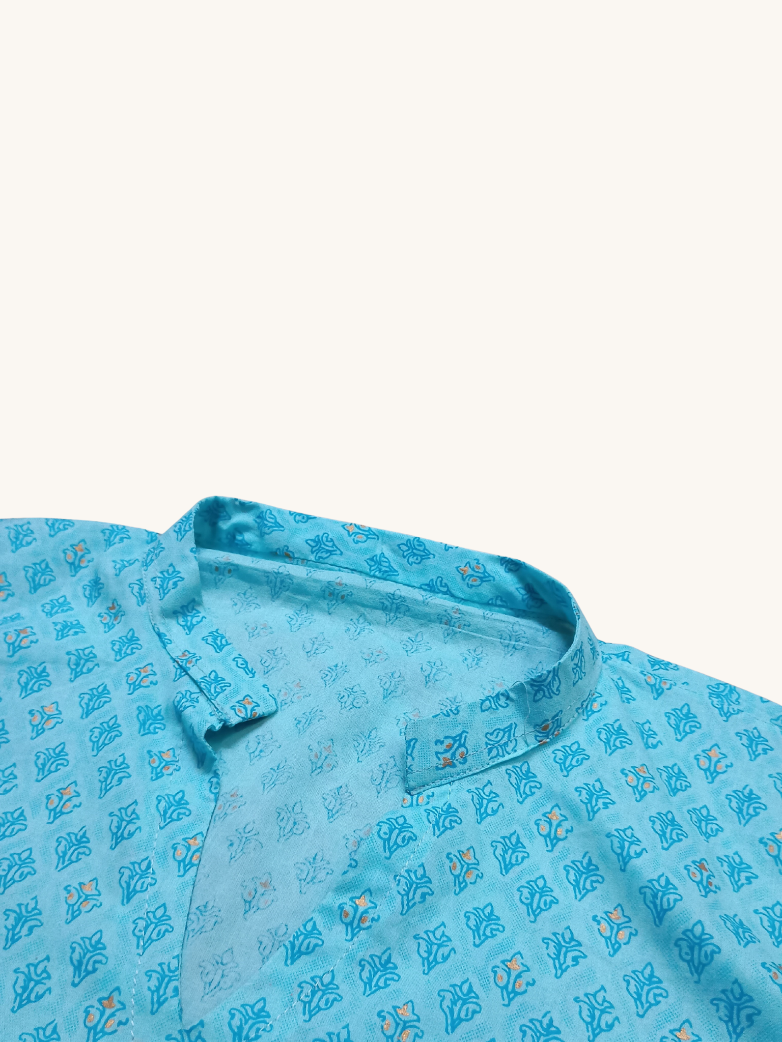 Light Blue Printed Short Kurti for Women - Casual & Office Wear